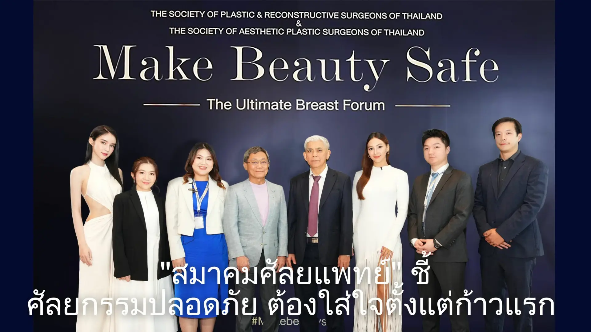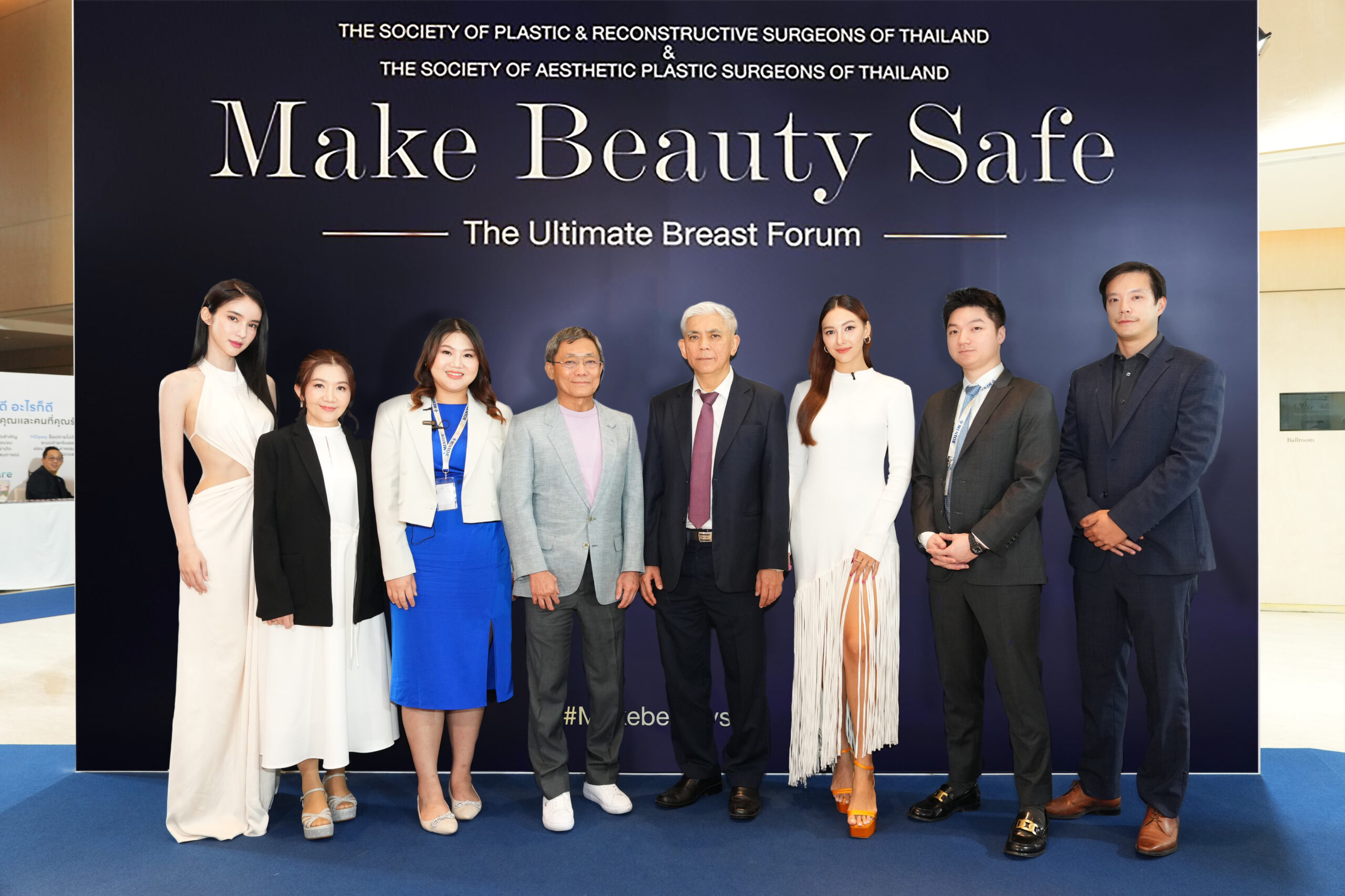 สมาคมศัลยแพทย์ตกแต่งแห่งประเทศไทย และสมาคมศัลยแพทย์ตกแต่งเสริมสวยแห่งประเทศไทย จัดงาน Make Beauty Safe จัดขึ้นต่อเนื่องเป็นเป็นปีที่ 2 เพื่อให้ประชาชนตระหนักถึงความปลอดภัยของการศัลยกรรม ซึ่งเป็นวัตถุประสงค์หลักของสมาคมฯ โดยในปีนี้ จัดเสวนาในหัวข้อ The Ultimate Breast Forum เน้นย้ำถึงความสำคัญของการเริ่มต้นทำศัลยกรรมหน้าอกควรพิจารณาอย่างรอบด้าน ทั้งแพทย์ผู้เชี่ยวชาญ สถานพยาบาลที่ปลอดภัย เครื่องมือแพทย์ และการปฏิบัติตามคำแนะนำแพทย์ก่อนและหลังการผ่าตัด ทุกปัจจัยล้วนมีผลต่อความปลอดภัยและผลลัพธ์ที่สวยงามถูกใจ จากวิทยากรผู้เชี่ยวชาญ ประกอบด้วย ศ. นพ. อภิรักษ์ ช่วงสุวนิช นายกสมาคมศัลยแพทย์ตกแต่งเสริมสวยแห่งประเทศไทย ประธานราชวิทยาลัยศัลยแพทย์แห่งประเทศไทย ศ. นพ. อภิชัย อังสพัทธ์ นายกสมาคมศัลยแพทย์ตกแต่งแห่งประเทศไทย พญ. พูนพิสมัย สุวะโจ นพ. วิษณุ โล่ สิริวัฒน์ นพ. พีรยะ กนกศิลป์ พญ. วนันยา โพธิ์ชัย นพ. ฐิติ ตันติธรรม และคุณปิยนุชนาฏ เรืองแสง พยาบาลวิชาชีพ ดร. ควาง ดอง ยอน จากเกาหลี และ ดร. ไล ยา เวย จากไต้หวัน พร้อมด้วย คุณโยชิ รินรดา ธุระพันธ์ และคารีสา สปริงเก็ตต์